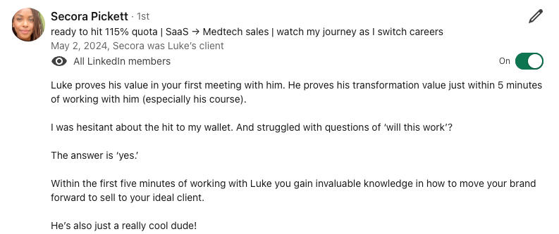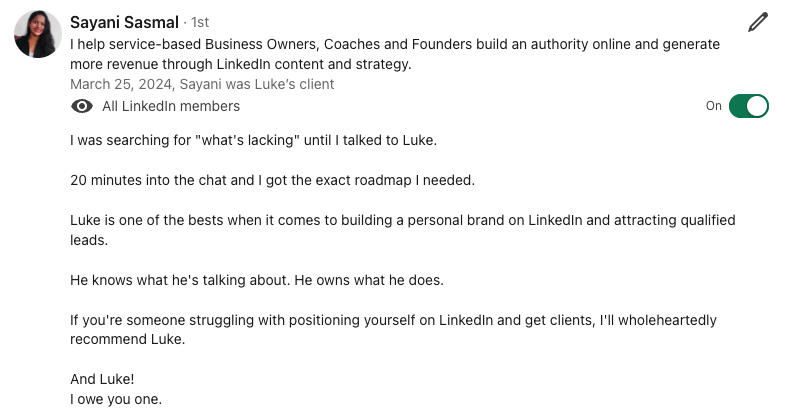 All of this becomes the foundations to help you build a personal brand that attracts the right audience, and gives you an offer to turn them into clients.